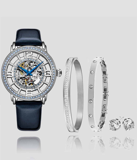 Winchester 3941.1 Automatic 38mm Skeleton with Sofia Frosted Bangle, Lily Polished Bangle and Studs