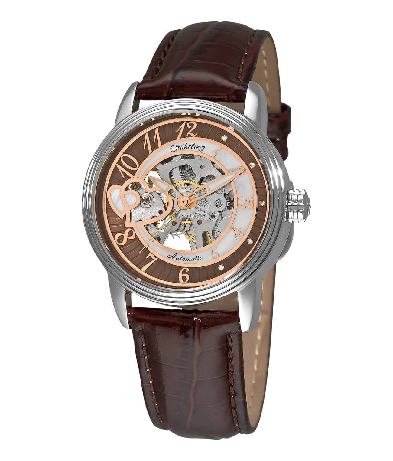 Skeletonized Dial with Crescent Configuration of Brass and Mother-of-Pearl with Heart-Shaped Design