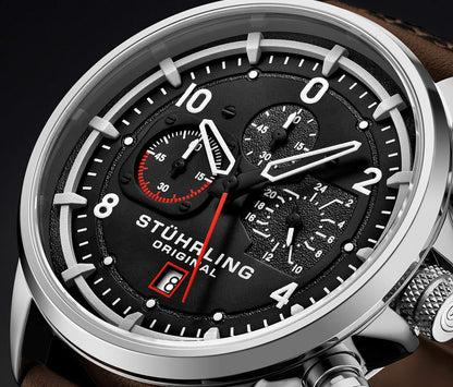 Embrace the timeless style of the Volda Aviator. Whether you're soaring above the clouds to your next destination or spending time with friends here at home, the Volda has you covered. Featuring a tachymeter and date window display, this chronograph will keep you in the know on your next adventure. And with a leather strap and steel tang buckle, you won't even know you're wearing it.
