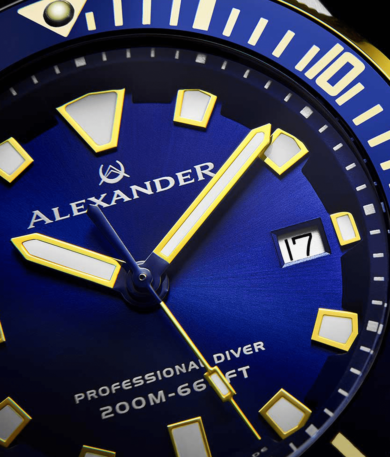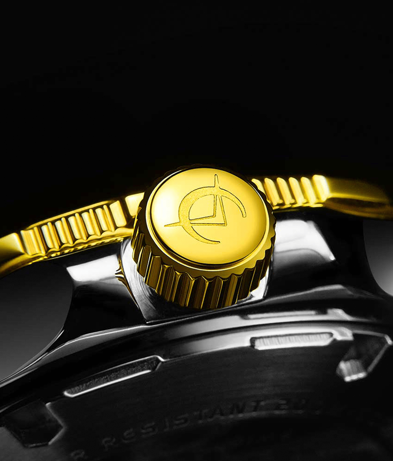 A Matt Sandblast Brass dial with applied indexes filled with Swiss Lume (BGW9), giving high luminosity in dark environments.