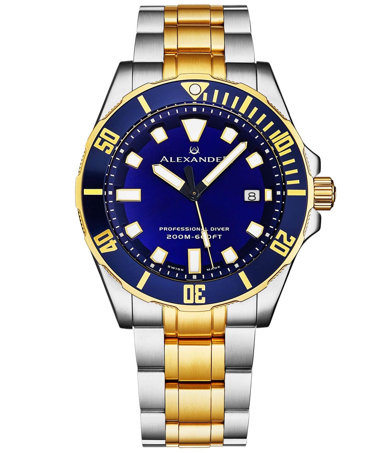 - Lunette tournante en aluminium avec points Swiss Lume (BGW9) en position 12 heures.