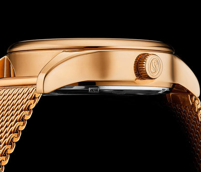 - Available with either an Alligator Embossed Genuine Leather Strap or a Stainless Steel Mesh Bracelet, each 22mm wide, allowing for personal style preference.