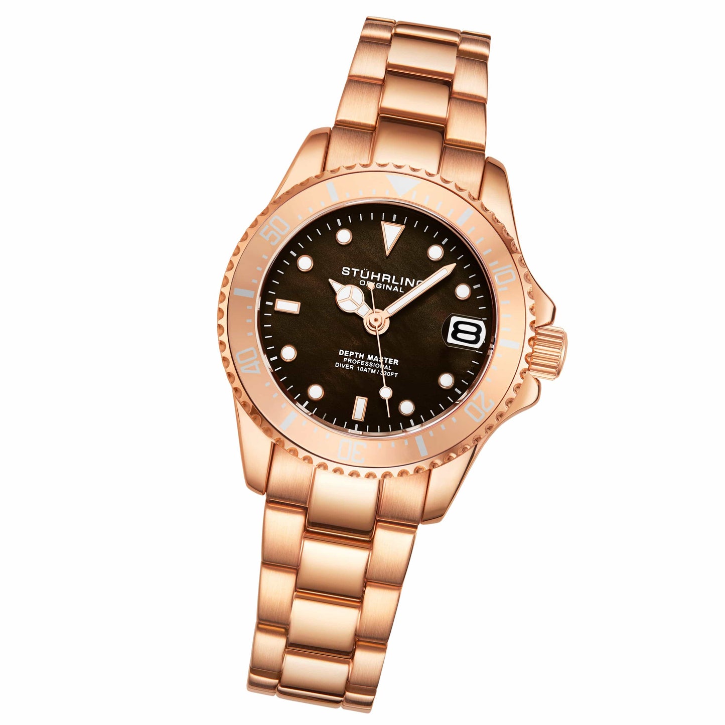- Un superbe cadran en nacre rassemble des aiguilles et des index lumineux de style bâton dans une présentation facile à lire, complétée par une lunette à bord de pièce.