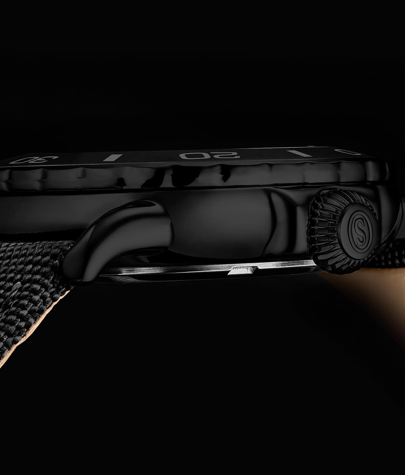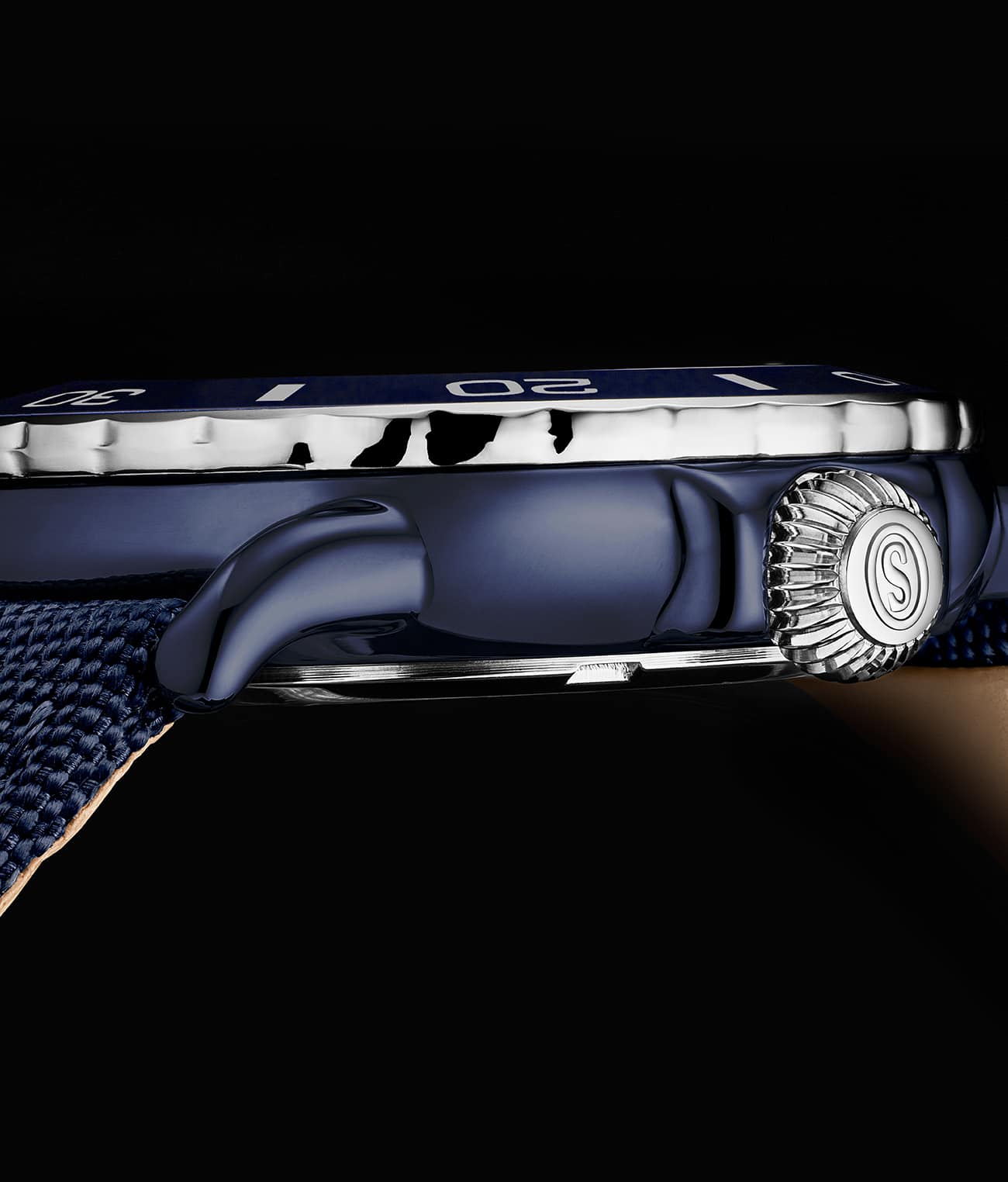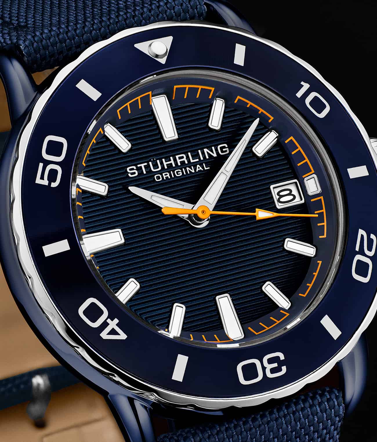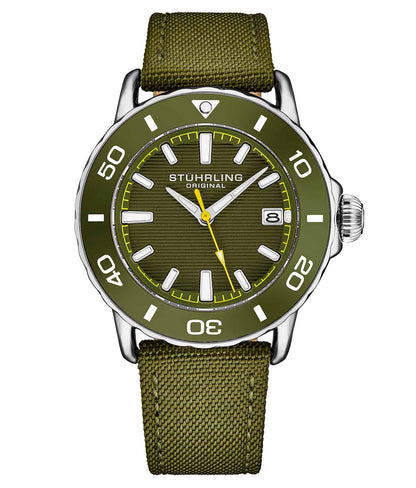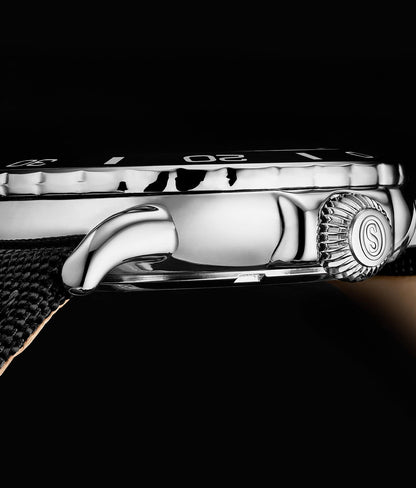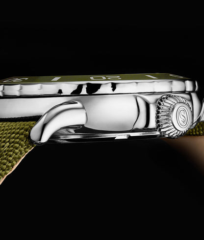 - Bracelet en nylon sergé satiné : Le bracelet en nylon sergé satiné durable et confortable est conçu pour résister aux rigueurs de la plongée tout en offrant un ajustement sûr et élégant.