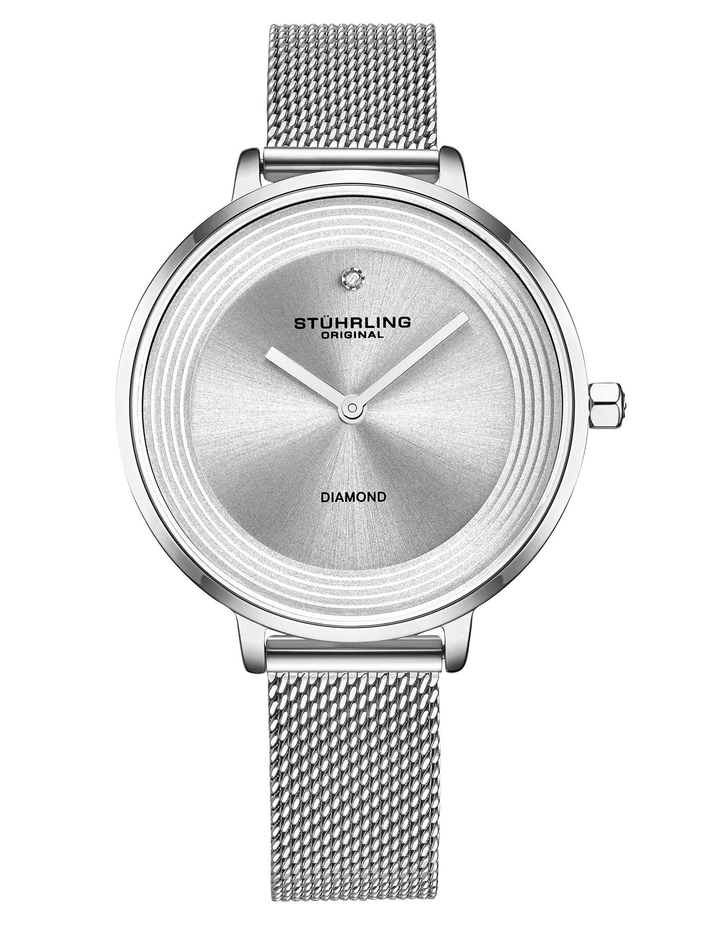 Brushed Finish Dial with Multi-Level Flange and Diamond Accents