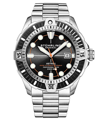 Un profil élégant et une montre automatique suisse classique Astral Dotée d'un cadran riche et éclatant, l'Astral 44 mm est une pièce intemporelle qui fait juste ce qu'il faut pour se démarquer. Des caractéristiques telles que la lunette tournante et les cornes audacieuses évoquent un sens du style masculin et aventureux ainsi qu'un mouvement automatique suisse haut de gamme à l'intérieur.