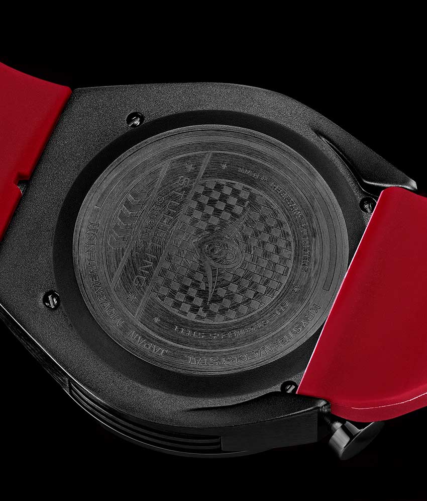 - Le Torero 894 fonctionne avec un mouvement japonais VK61 Chrono et dispose de poussoirs à tête de taureau uniques et d'une couronne cannelée à 12 heures.