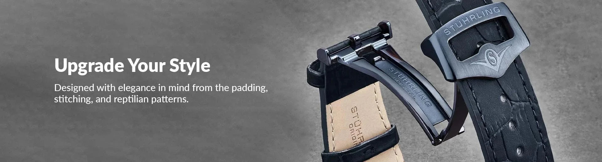 Alligator Embossed Black Leather 24mm Strap