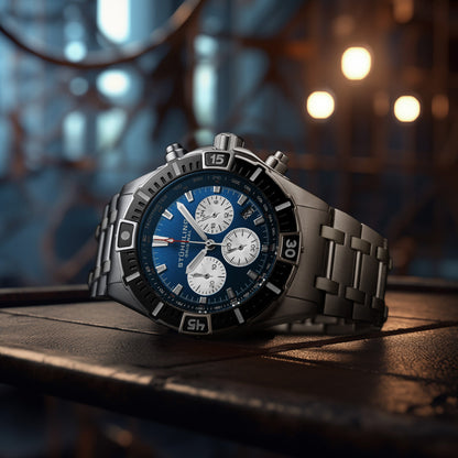 ה-Sturling Stellar 44mm Chronograph מגלם דיוק וסגנון, המותאם לאנשים בעלי אבחנה שמחפשים מצוינות בכל פן של החיים. עם פונקציונליות חזקה המשולבת בצורה חלקה בעיצוב מלוטש ומודרני, שעון זה הופך לבן לוויה האידיאלי הן לעיסוקים מקצועיים והן למסעות הרפתקאות.