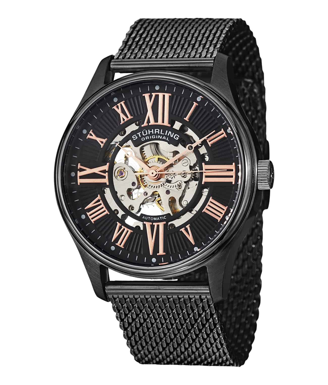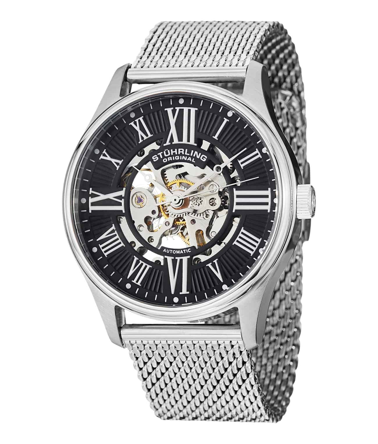 Guilloche-like Stamped Lined Design Skeletonized Dial