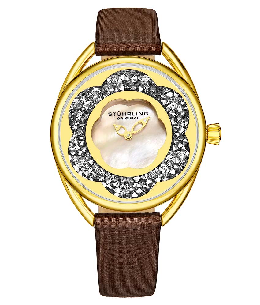 - החוגה הפנימית של אם הפנינה מוקפת בגזרת דפוס פרחים מלאה בקריסטלים, היוצרות תצוגה מיוחדת במינה.