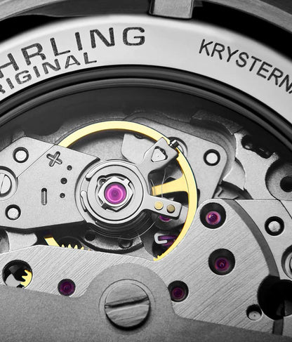 - תנועת Miyota 8215 של Regatta זוכה לאור הזרקורים עם גב נרתיק תצוגה מוברג.