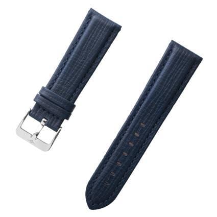 22 mm Blue Leather Replacement Strap with a Steel Tang buckle. This is a direct replacement for Stuhrling model 104.