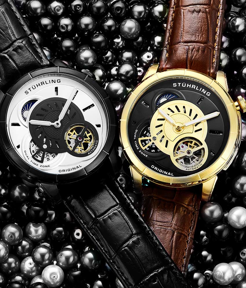 Stainless steel tang buckle with Stuhrling "Wings" logo