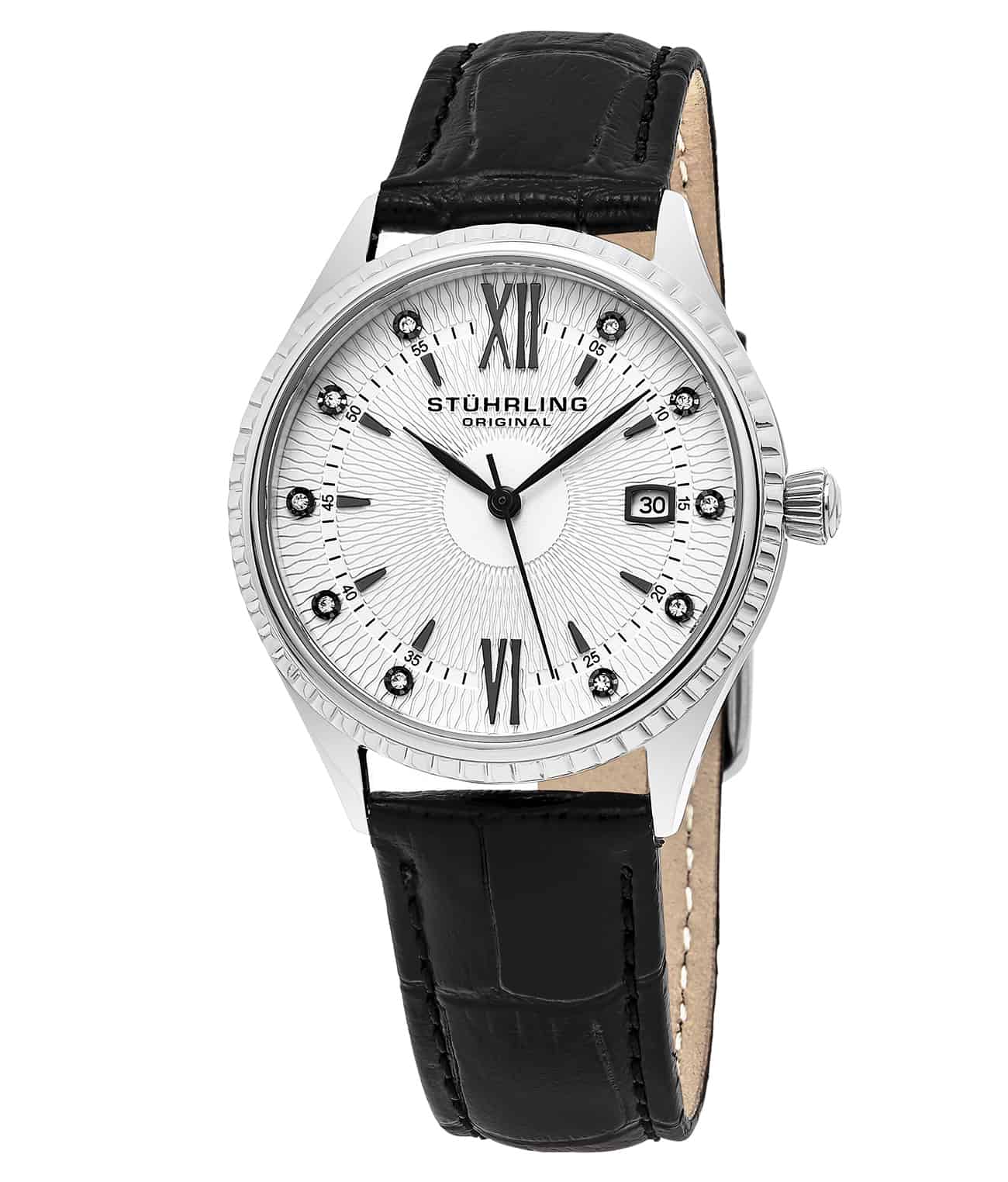 Stainless steel tang buckle with Stuhrling "Wings" logo