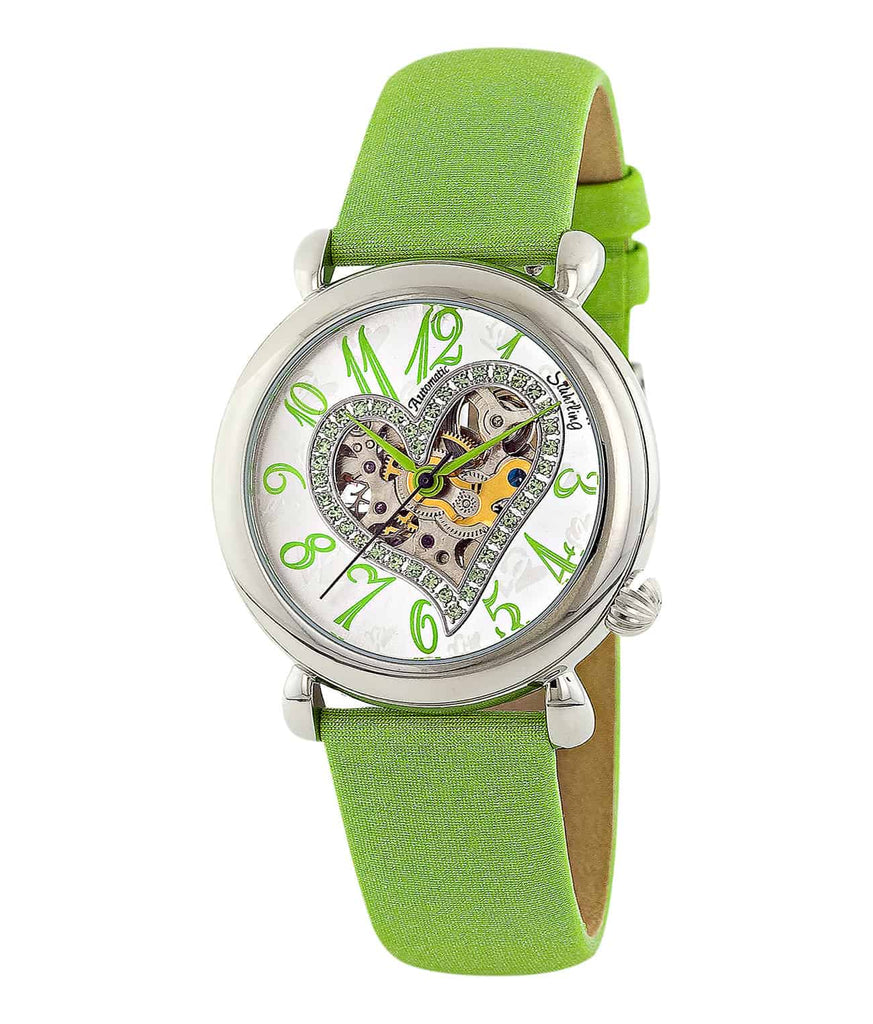 Skeletonized Dial in a Heart-Shaped Cut-Out with Swarovski Crystals Filled Heart-Border; with Etched Hearts on the Perimeter of the Dial