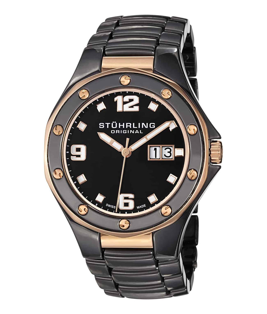 - Polished Decagonal Bezel with Stuhrling S-Screws