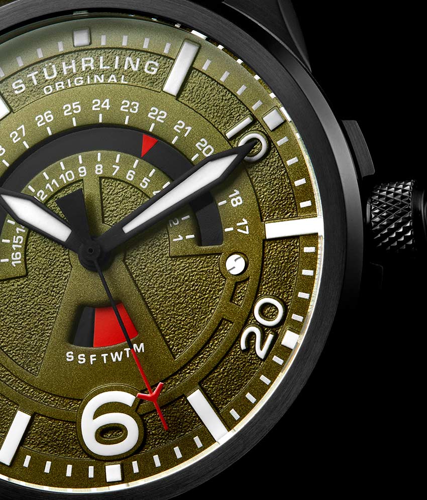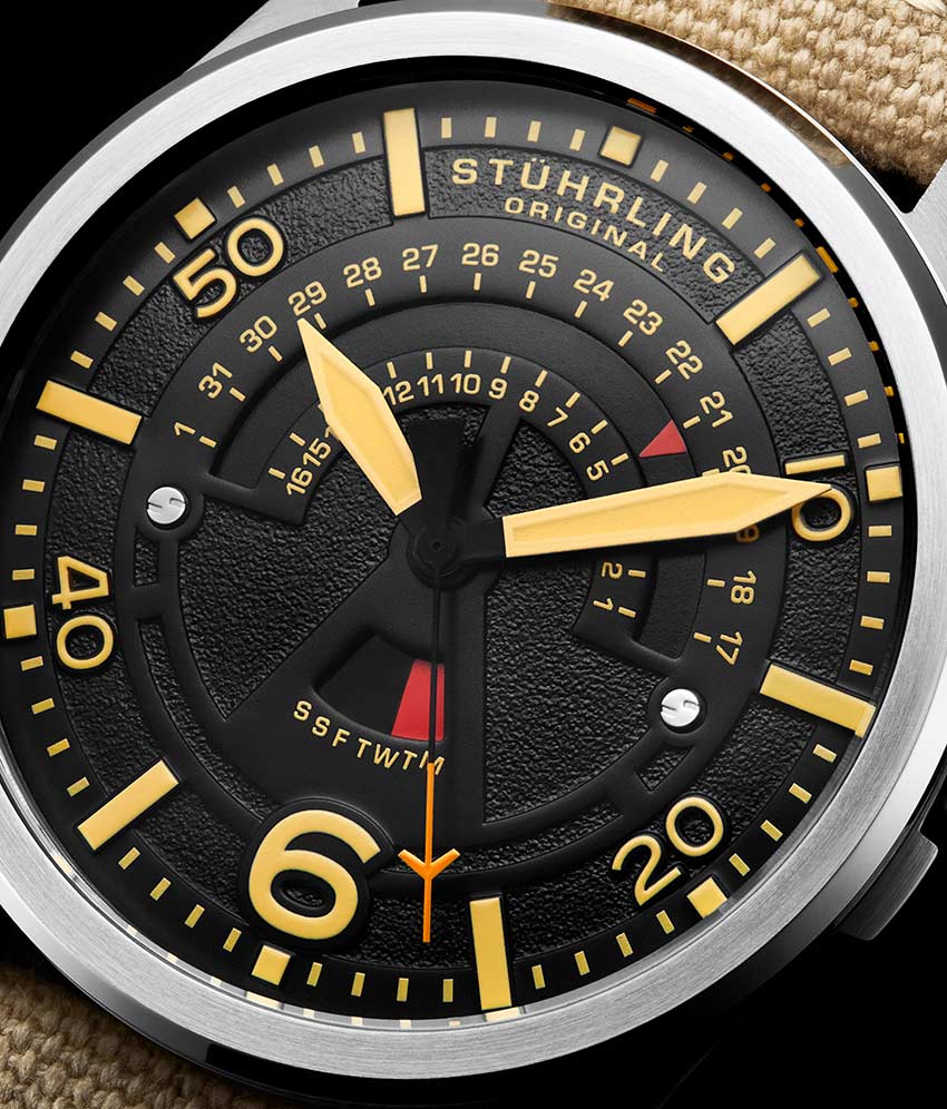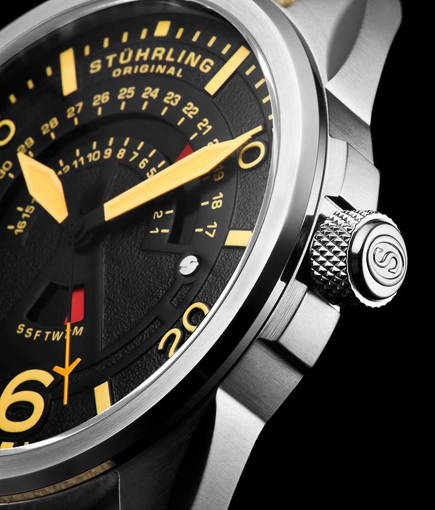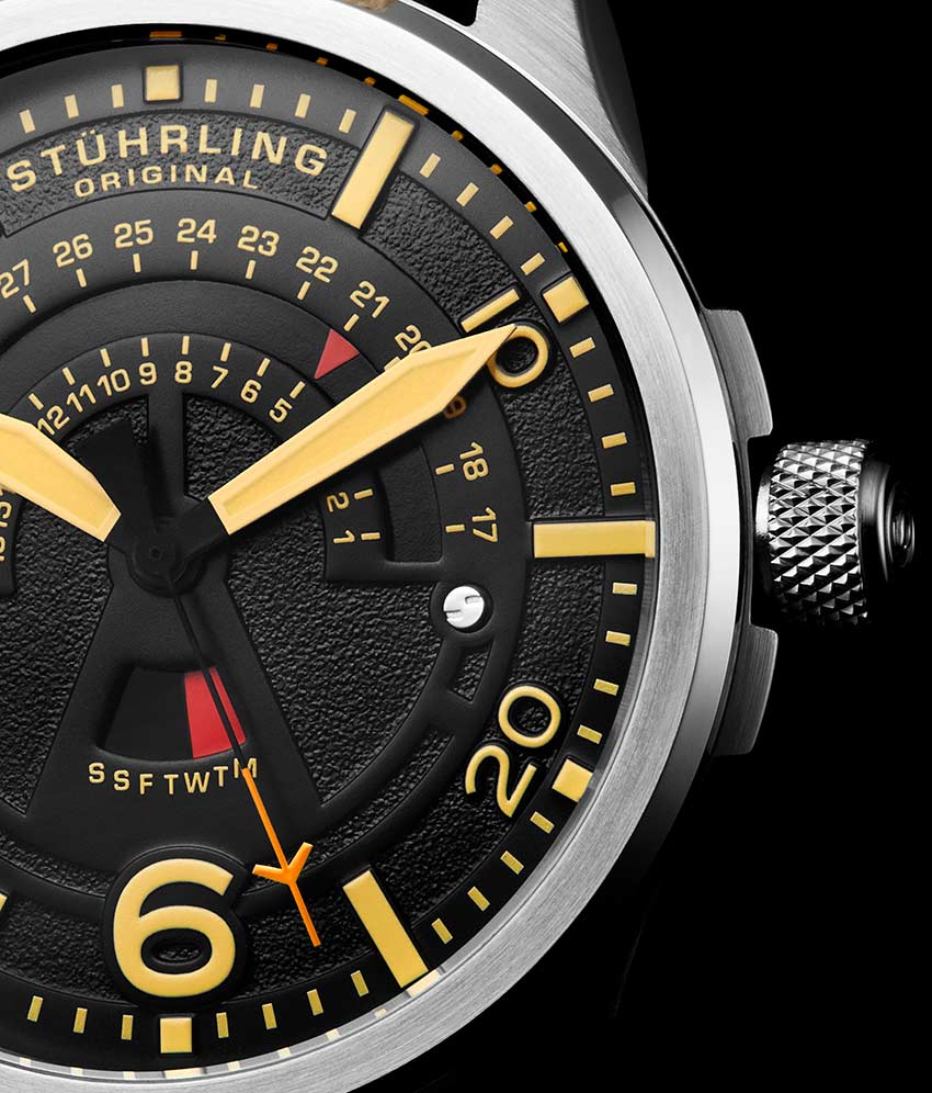 - Dynamic day and date displays keep your eyes on the time while you’re waiting for take off.