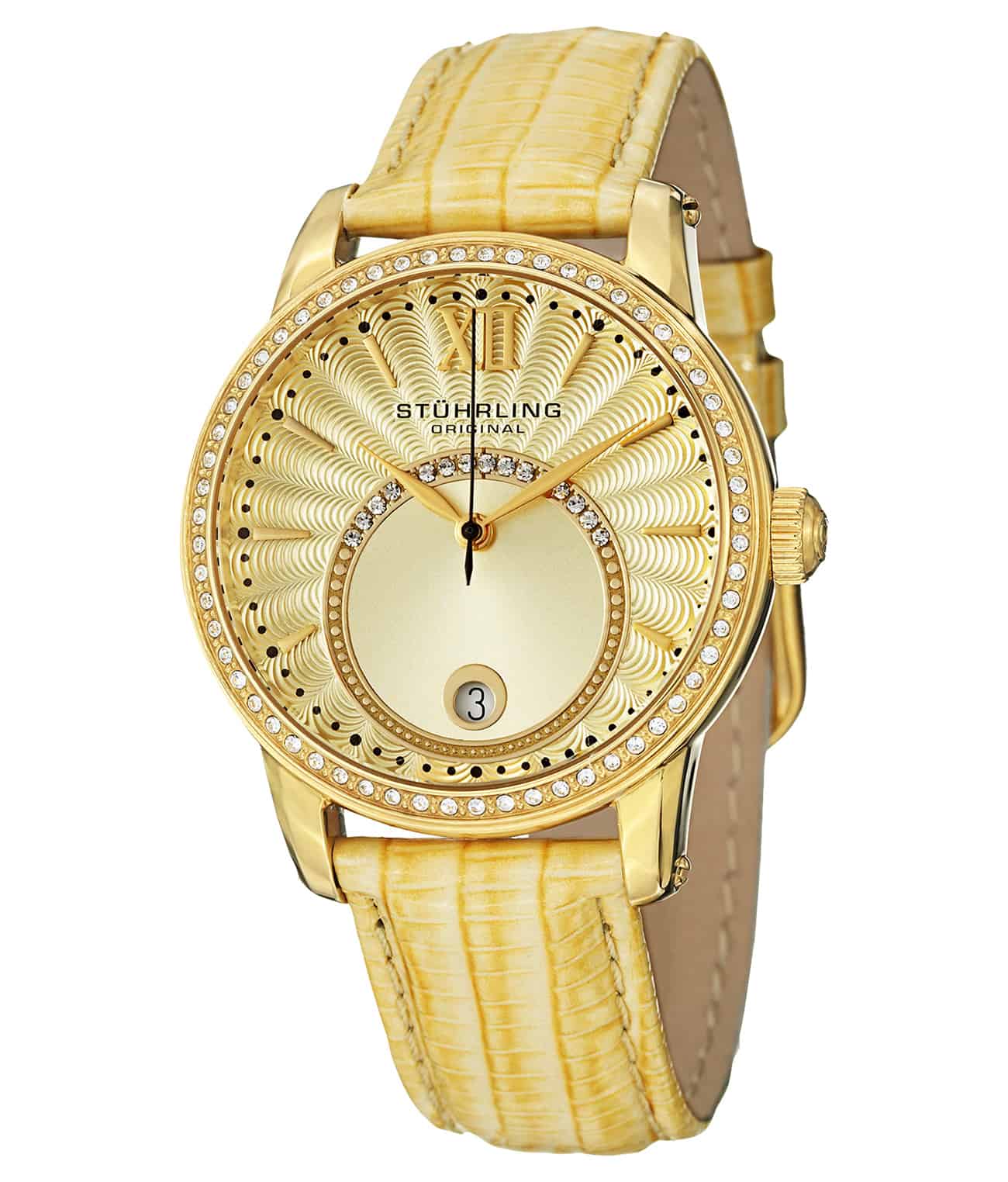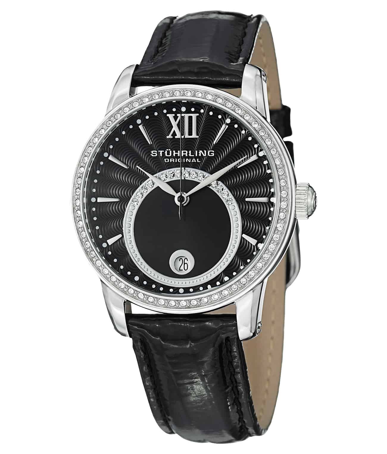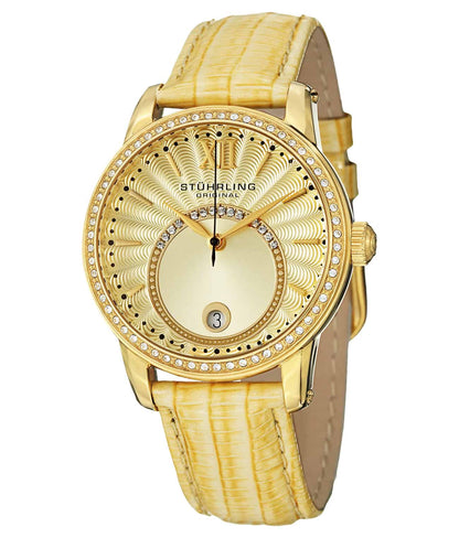 Guilloche-like Stamped Solei Outer Dial with Swarovski Crystal-filled Border with Brushed Finish Inner Dial