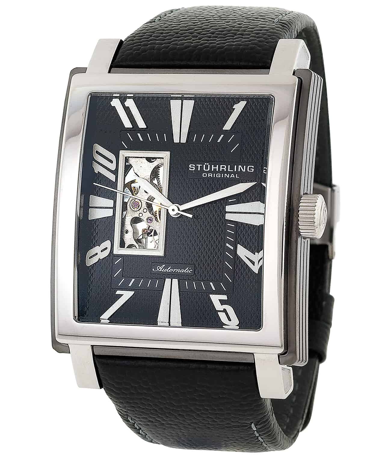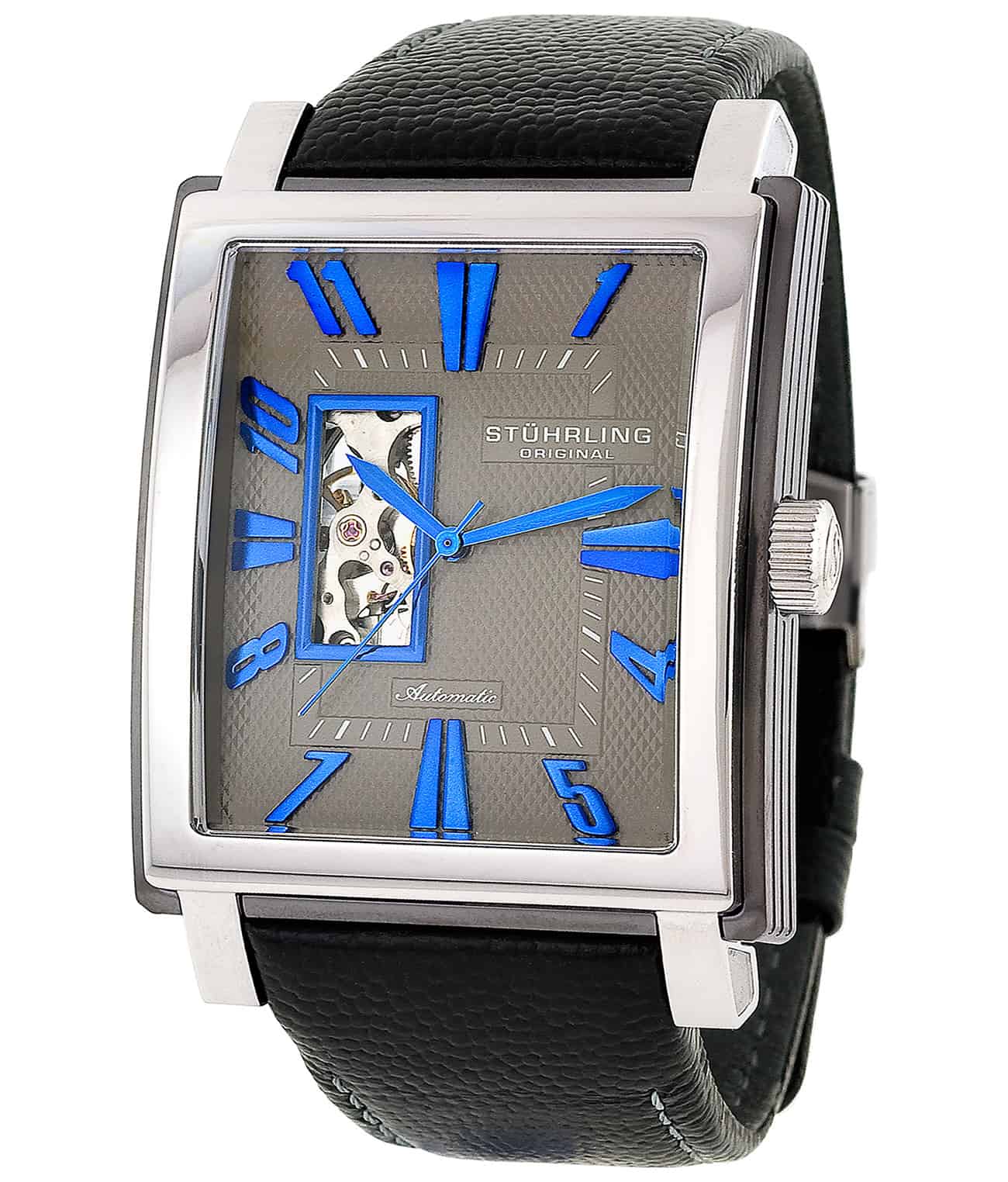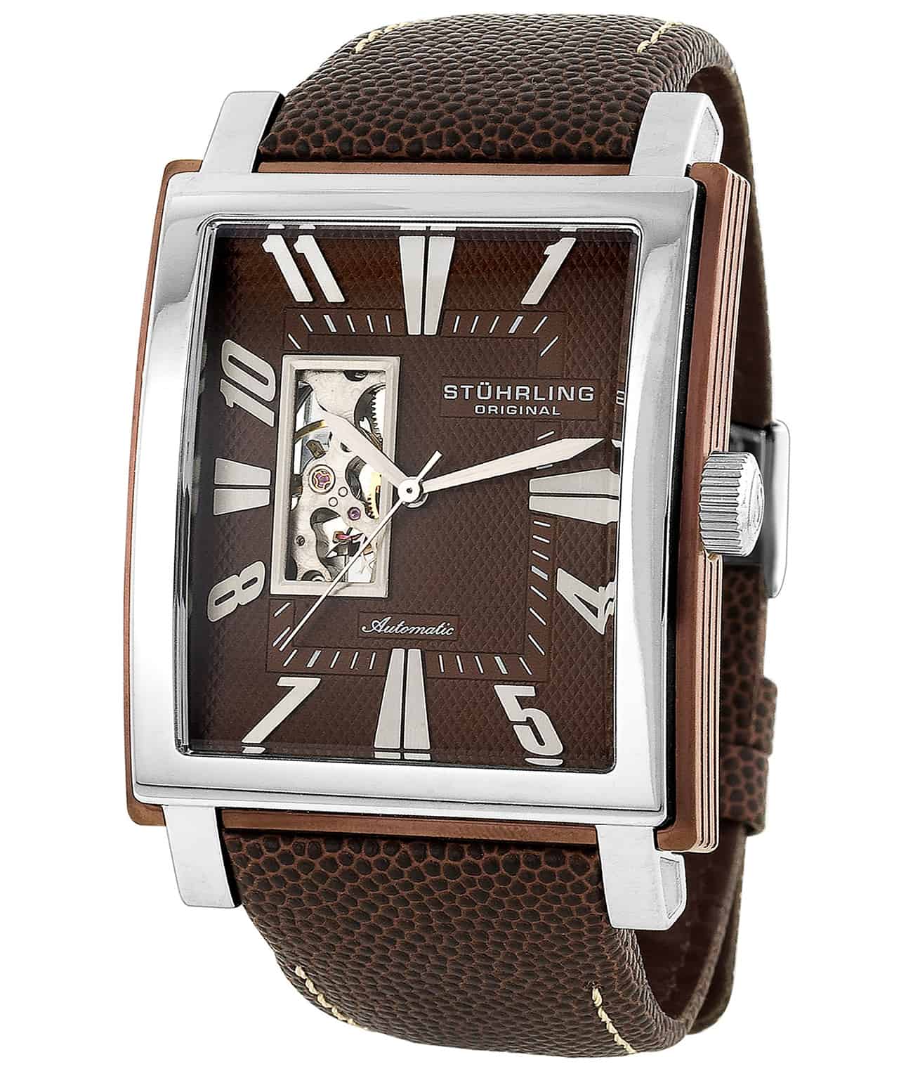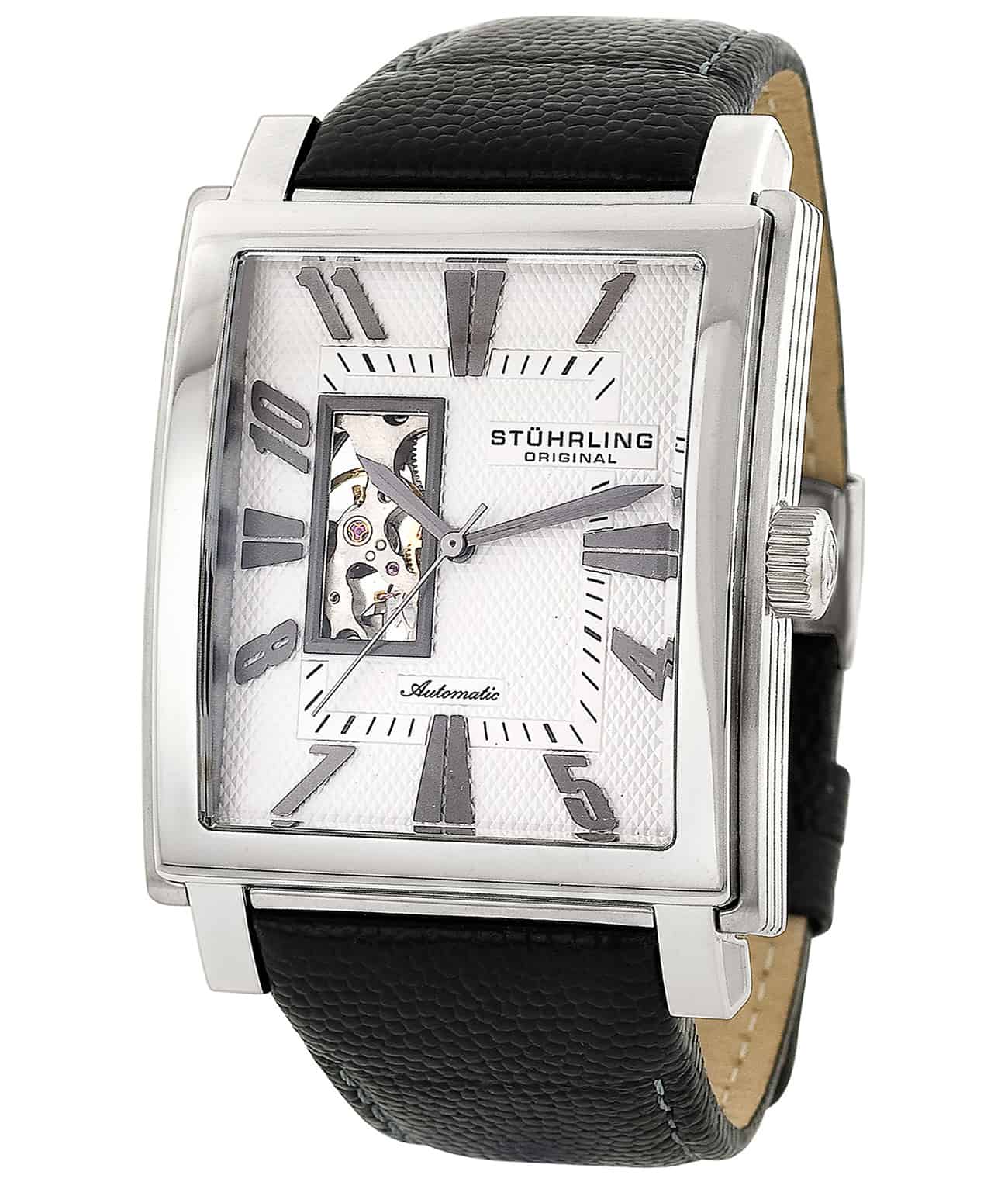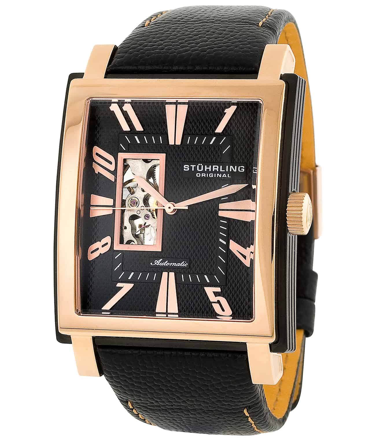 - Tapered Genuine French Leather Strap with Contrast Stitching (27mm at the lugs down to 22mm at the clasp)