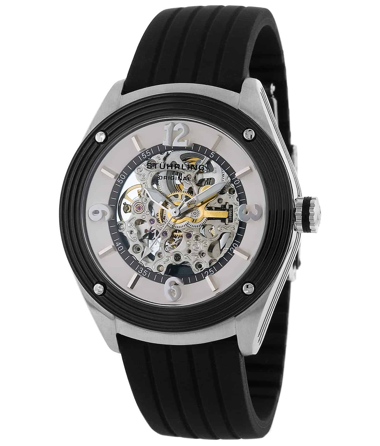 - Separate Piece Plastic Step-Design Bezel with Stuhrling “S” Decorative Screws