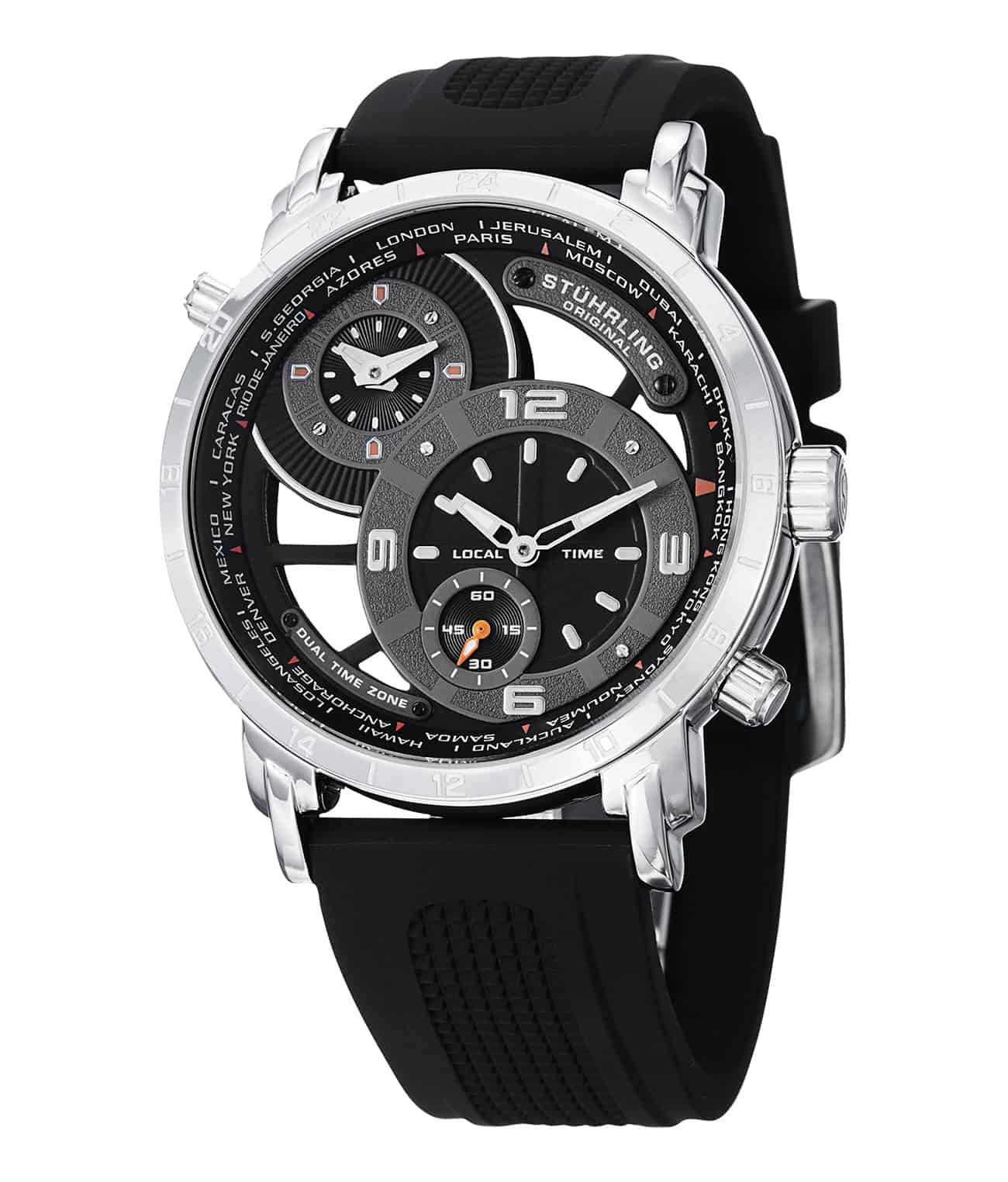 Spoke-Style Guilloche-Like Stamped Dial with Dual Time and Seconds Sub Dial