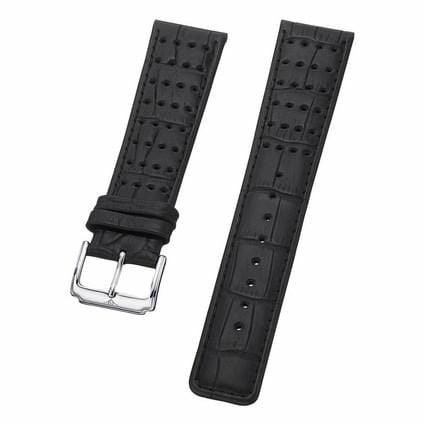 22 mm Black Leather Replacement Strap with a Steel Tang buckle. This is a direct replacement for Stuhrling model 102.