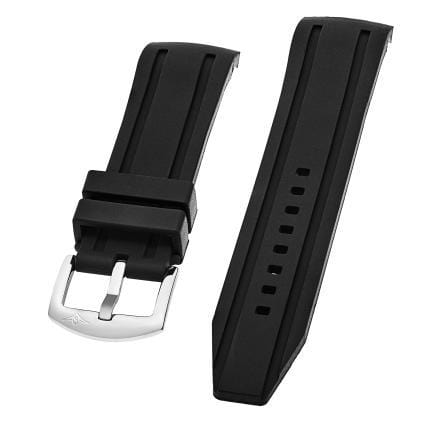 24 mm Black Rubber Replacement Strap with a Steel Tang buckle. This is a direct replacement for Stuhrling model 1071.