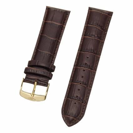 24 mm Brown Leather Replacement Strap with a Yellow Gold Tang buckle. This is a direct replacement for Stuhrling model 1074.