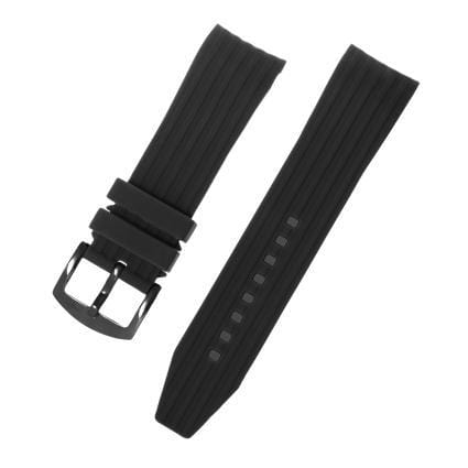 24 mm Black Rubber Replacement Strap with a Black Tang buckle. This is a direct replacement for Stuhrling model 1078.