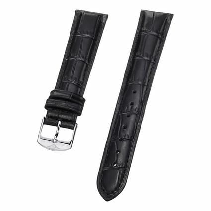 18 mm Black Leather Replacement Strap with a Steel Tang buckle. This is a direct replacement for Stuhrling model 108D.