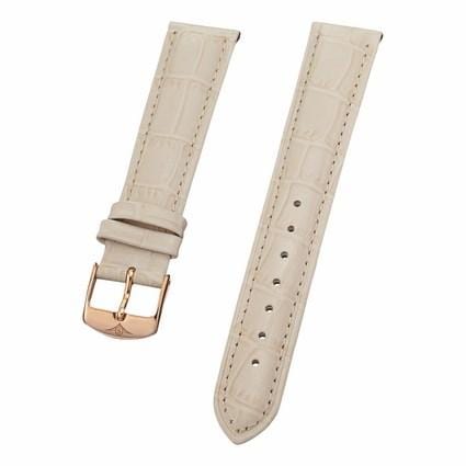 18 mm White Leather Replacement Strap with a Rose Gold Tang buckle. This is a direct replacement for Stuhrling model 108D.