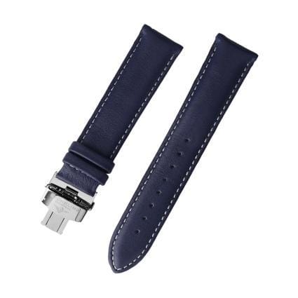 22 mm Blue Leather Replacement Strap with a Steel Deployant buckle. This is a direct replacement for Stuhrling model 115.