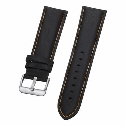 24 mm Black Leather Replacement Strap with a Steel Tang buckle. This is a direct replacement for Stuhrling model 129A2.