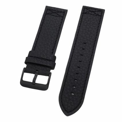 24 mm Black Leather Replacement Strap with a Black Tang buckle. This is a direct replacement for Stuhrling model 129B2.