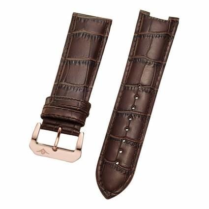 24 mm Brown Leather Replacement Strap with a Rose Gold Tang buckle. This is a direct replacement for Stuhrling model 146A.