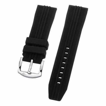 24 mm Black Rubber Replacement Strap with a Steel Tang buckle.