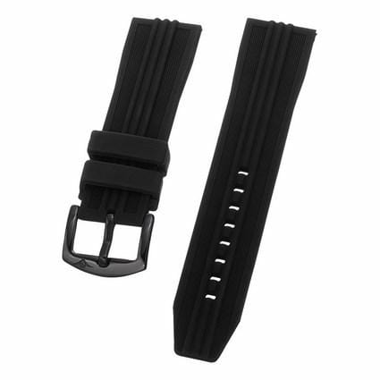 24 mm Black Rubber Replacement Strap with a Black Tang buckle. This is a direct replacement for Stuhrling model 150DR.