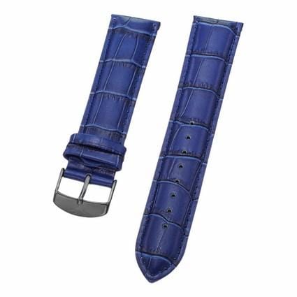 22 mm Blue Leather Replacement Strap with a Black Tang buckle. This is a direct replacement for Stuhrling model 165B2.