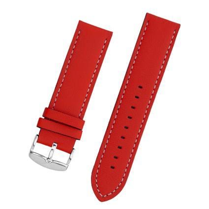 22 mm Red Leather Replacement Strap with a Steel Tang buckle.