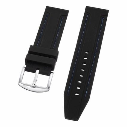 24 mm Black Rubber Replacement Strap with a Steel Tang buckle. This is a direct replacement for Stuhrling model 204A.