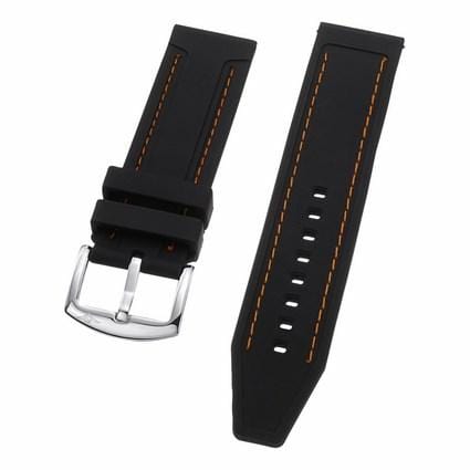 24 mm Black Rubber Replacement Strap with a Steel Tang buckle. This is a direct replacement for Stuhrling model 204A.