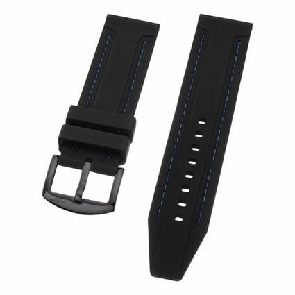 24 mm Black Rubber Replacement Strap with a Black Tang buckle. This is a direct replacement for Stuhrling model 204A.