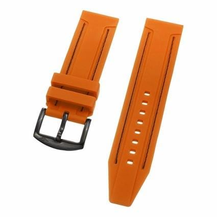 24 mm Orange Rubber Replacement Strap with a Black Tang buckle. This is a direct replacement for Stuhrling model 204A.
