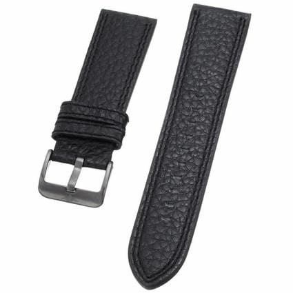 24 mm Black Leather Replacement Strap with a Black Tang buckle.