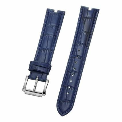 20 mm Blue Leather Replacement Strap with a Steel Tang buckle. This is a direct replacement for Stuhrling model 211.