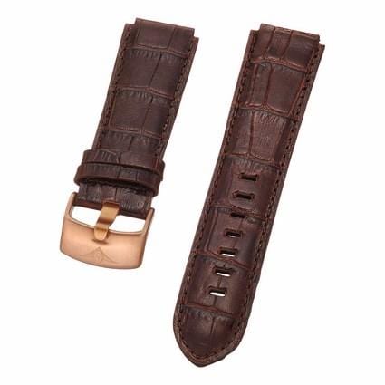 20 mm Brown Leather Replacement Strap with a Rose Gold Tang buckle. This is a direct replacement for Stuhrling model 217.
