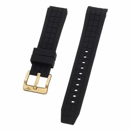 20 mm Black Rubber Replacement Strap with a Yellow Gold Tang buckle. This is a direct replacement for Stuhrling model 259.
