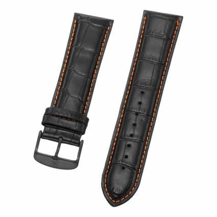 24 mm Black Leather Replacement Strap with a Black Tang buckle. This is a direct replacement for Stuhrling model 279.