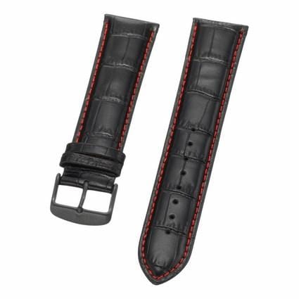 24 mm Black Leather Replacement Strap with a Black Tang buckle. This is a direct replacement for Stuhrling model 279.